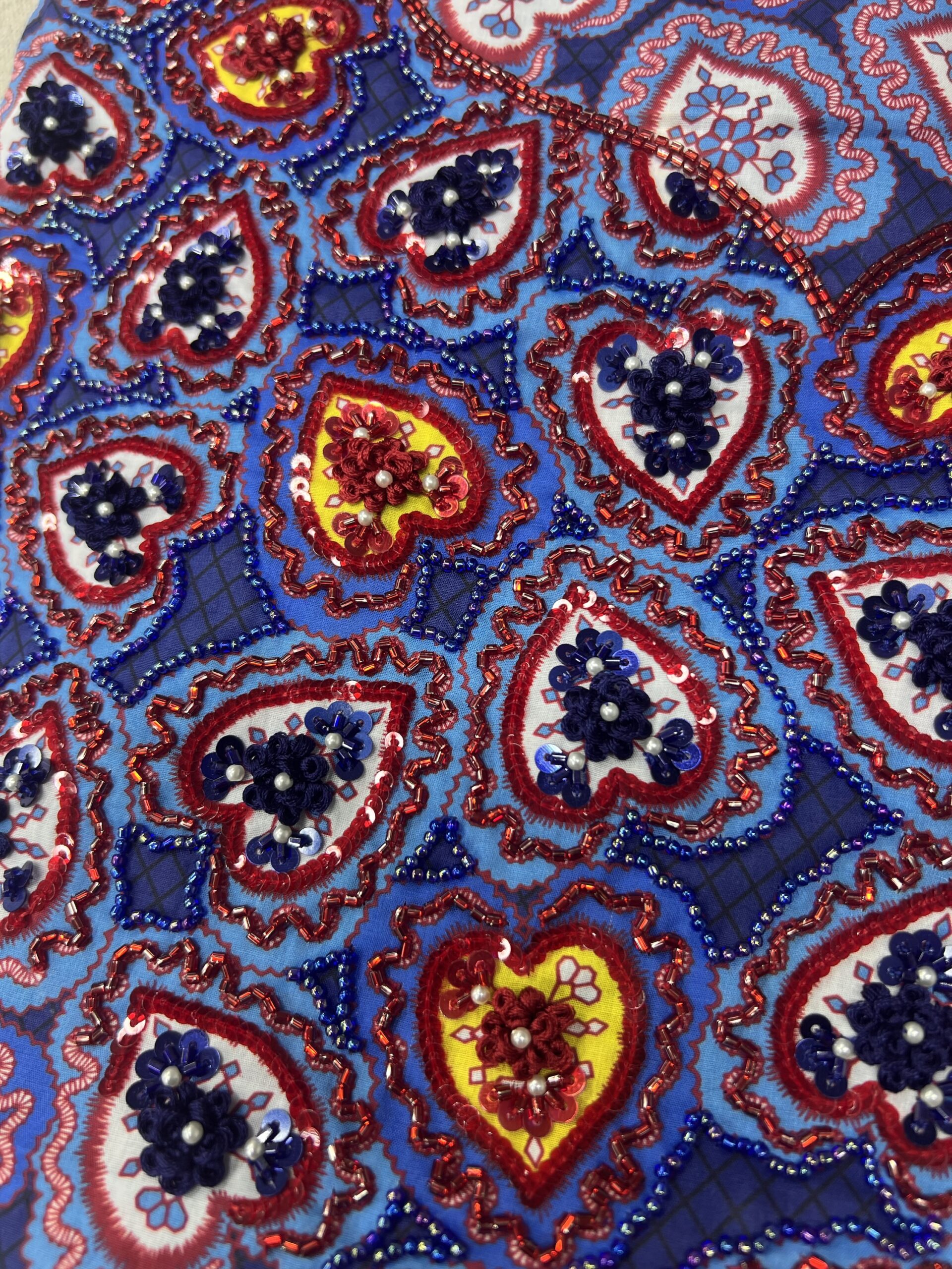 Liberty fabric Makawar with beautiful copy embroidery with different materials.