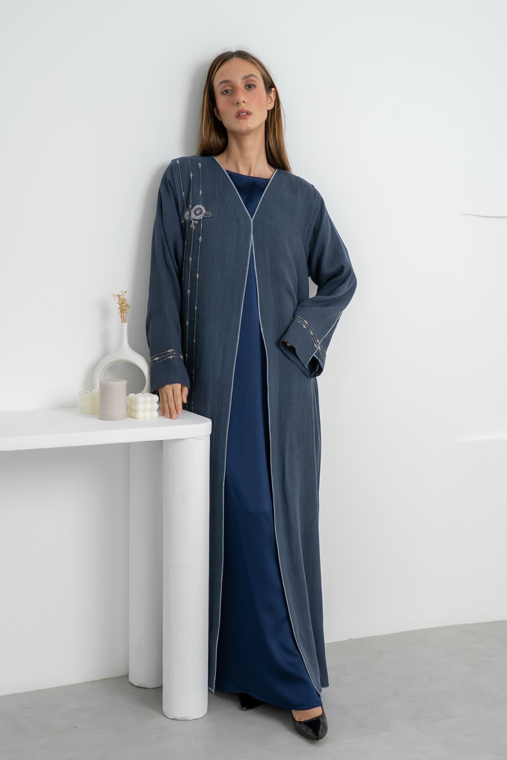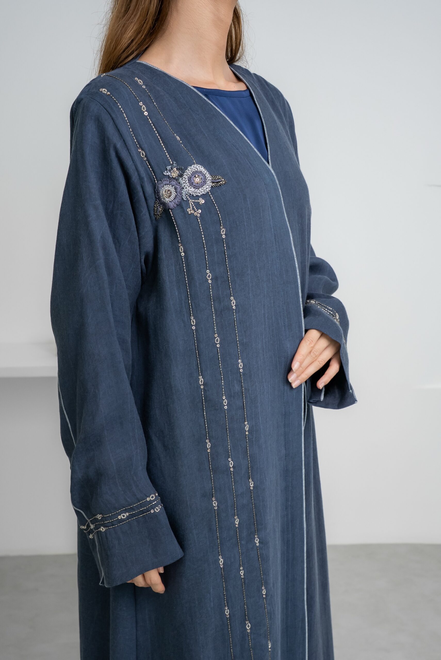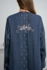 Fabric: Soft linen with a soft Armani silk lining, blended with embroidery design on the back and front very comfortable. For all occasions and travel.