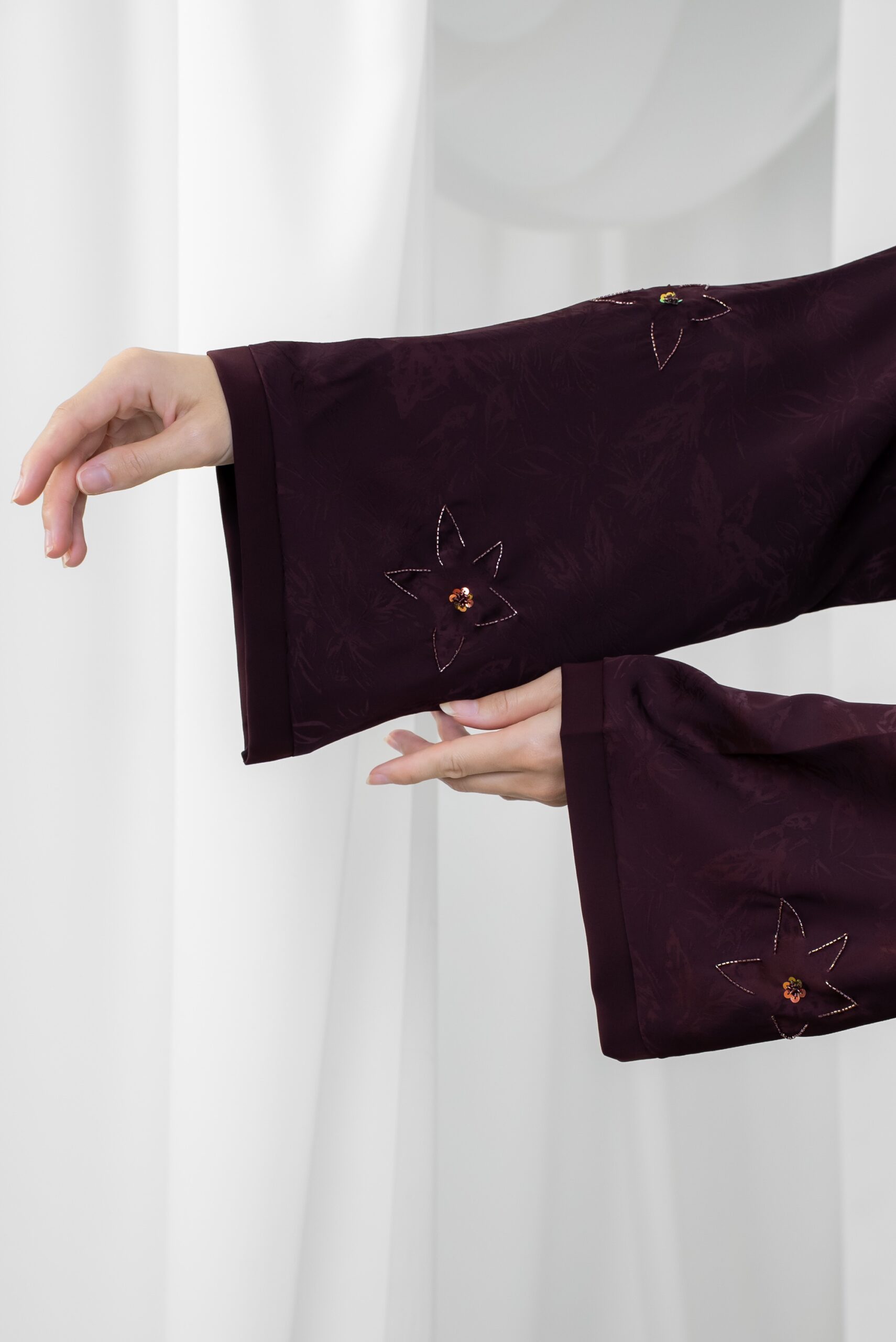 Fabric: Jacquard crepe with light and soft beaded details