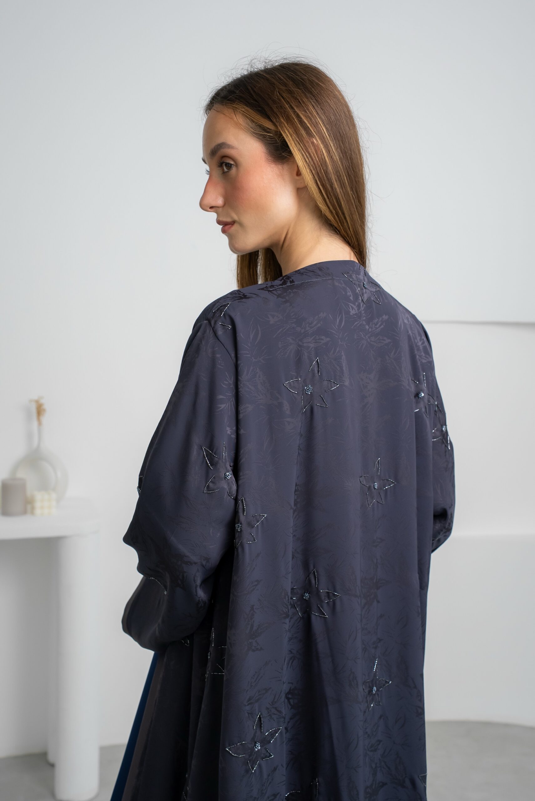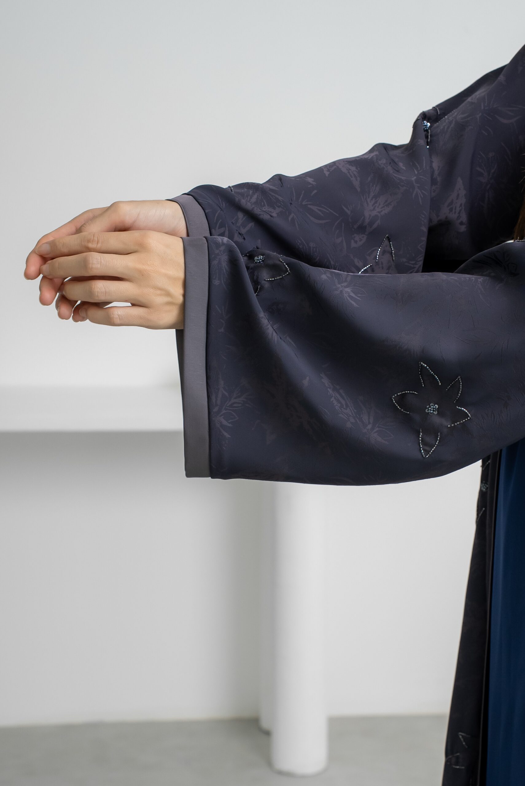 Fabric: Jacquard crepe with light and soft beaded details