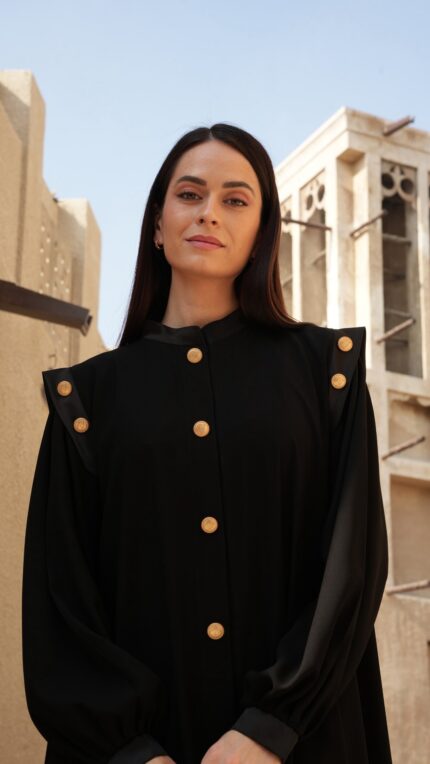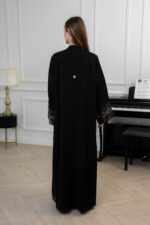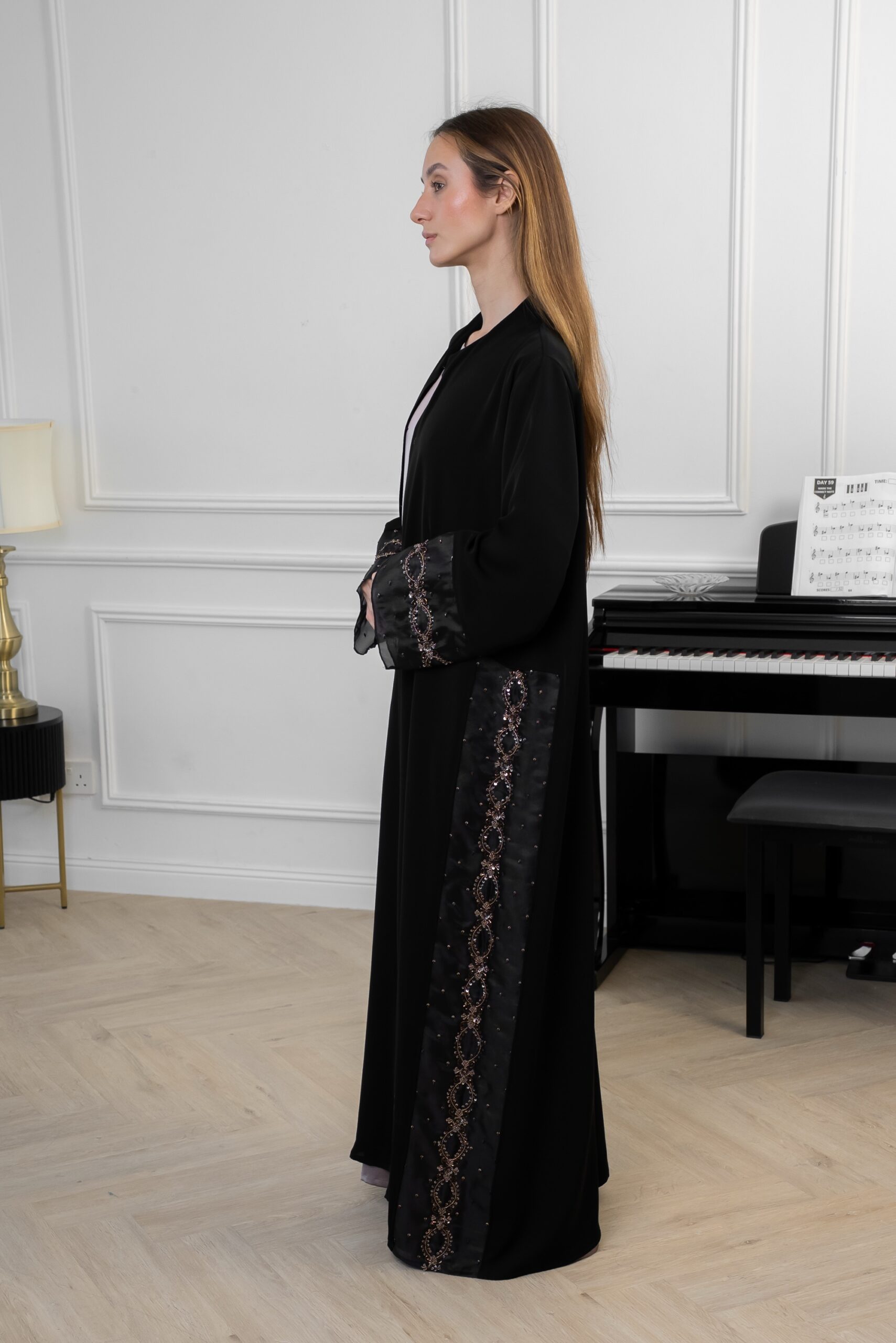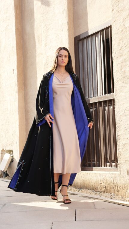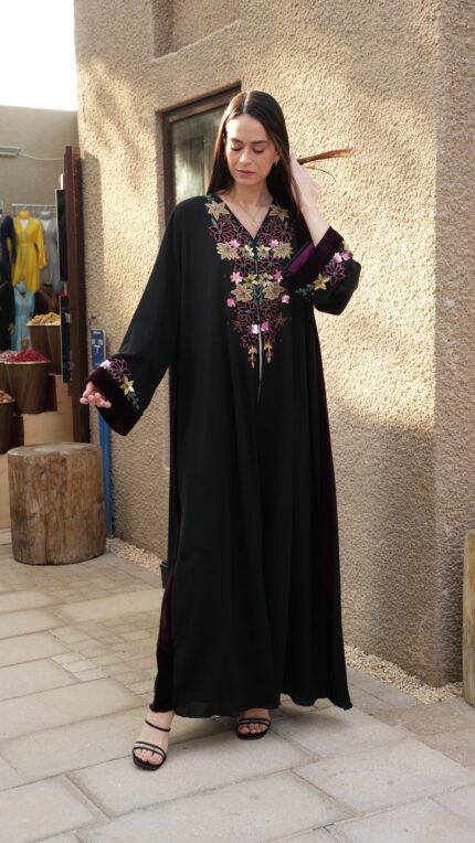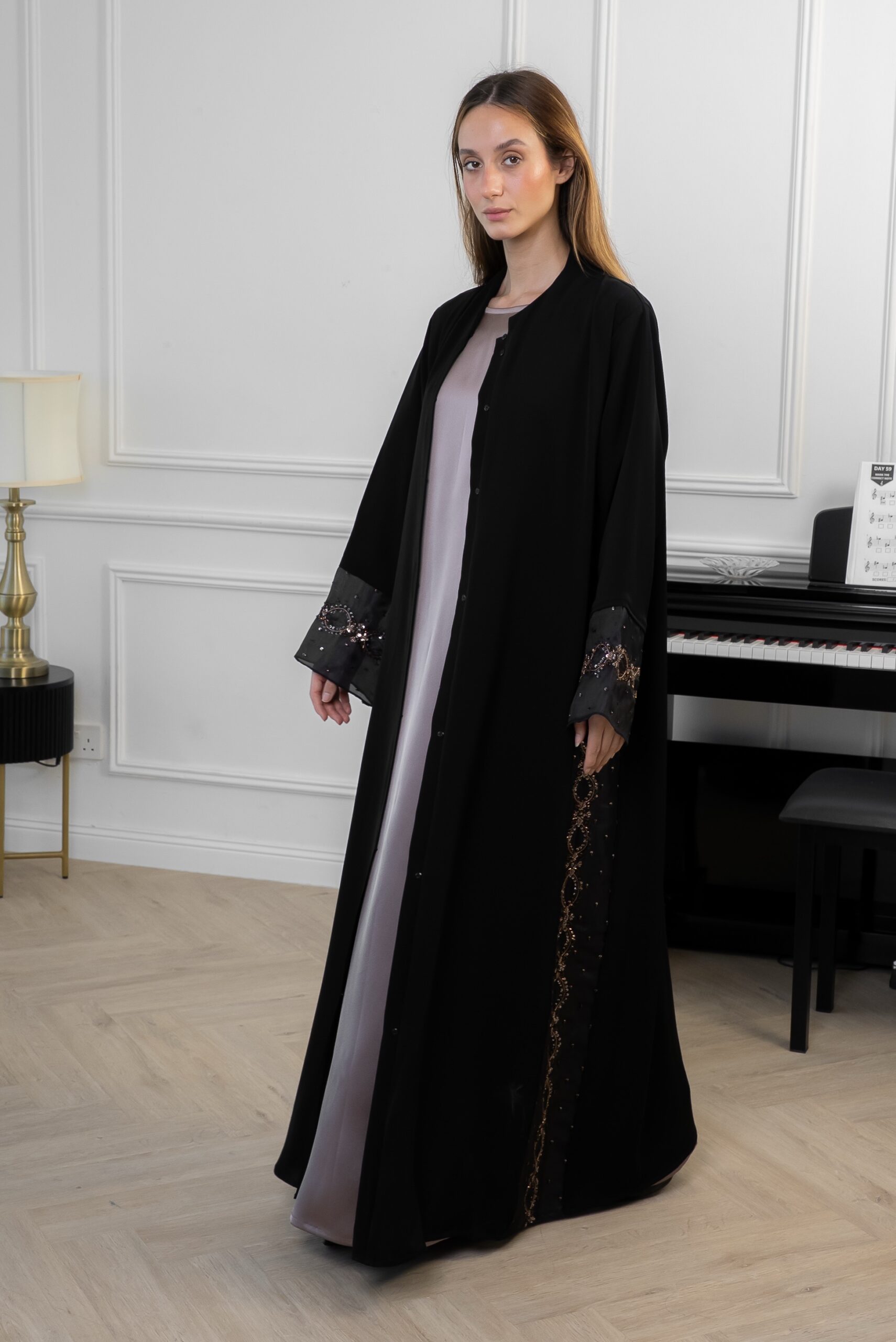 Fabric: Cavalli Nada Korean and Korean organza, elegantly designed with distinctive gold embroidery on the sides and sleeves, for all occasions.