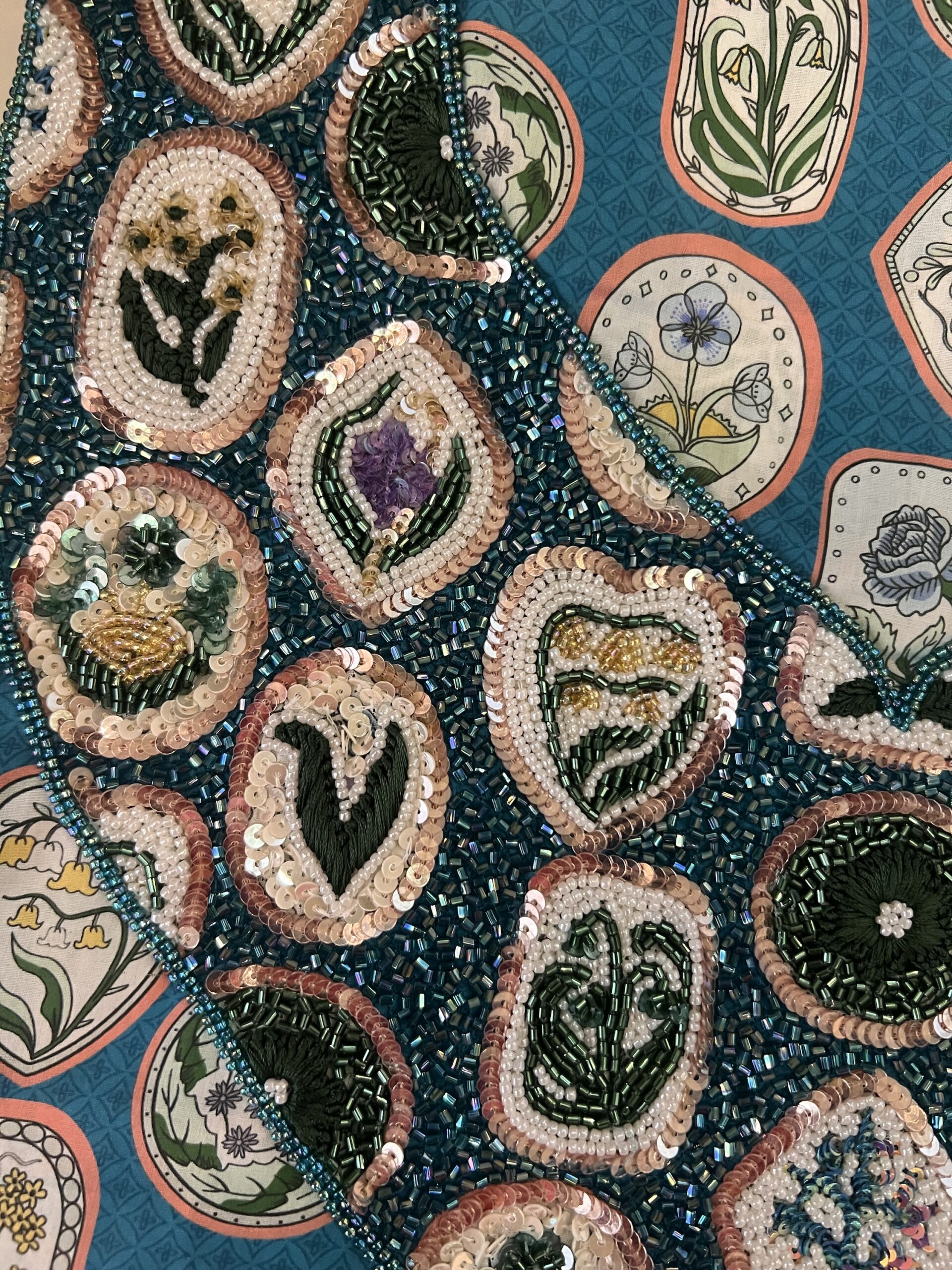 Liberty fabric Makawar with beautiful copy embroidery with different materials.